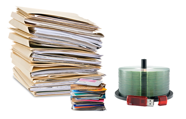 Data do not only exist on paper. Particularly in the office, data are stored on a wide variety of different media, such as paper, CDs, USB-sticks, credit cards….