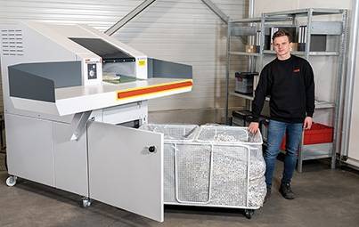 The top model of the HSM Powerline heavy duty document shredder range. This powerhouse is perfect for the shredding of large quantities in archives or central document shredding stations.